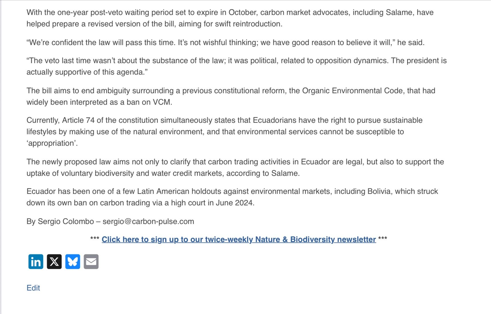 Entrevista por parte de carbon pulse